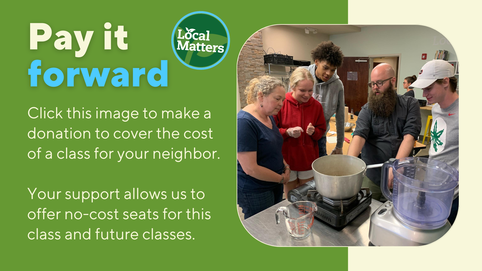 - This class will take place in-person at Local Matters' offices.